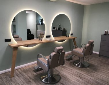 Durch die enge Zusammenarbeit mit unseren Partnern und Lieferanten ist es uns möglich, individuelle Wünsche zu erfüllen. Tischkonsolen in Überlänge, Bedienplätze in Sondermaßen, Polsterung des ausgesuchten Komfort-Frisörstuhls in Wunschfarbe oder Zusatzausstattungen der Möbel. Nichts ist unmöglich. Rezeptionen, Shampoobars oder Bedienplätze aus unserem Entwurf werden in bestens ausgestatteten Partnerbetrieben des Schreiner- , Schlosser- und Glaserhandwerks nach Zeichnung für Sie gefertigt. Überzeugen Sie sich in unseren Referenzen.